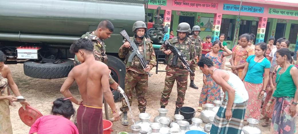 বান্দরবান সেনা জোনের মানবিক উদ্যোগে খাবার পানি ও নিত্য প্রয়োজনীয় কাজে ব্যবহার্য পানি পেয়েছেন চিম্বুক ও তার পার্শ্ববর্তী এলাকার ভুক্তভোগী